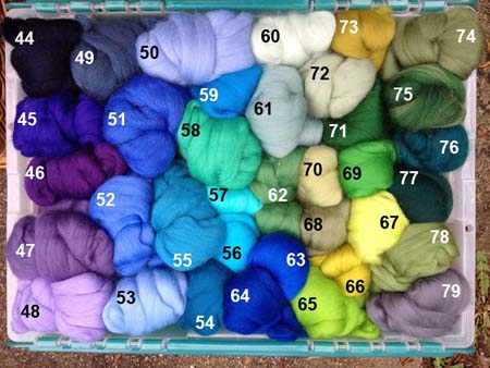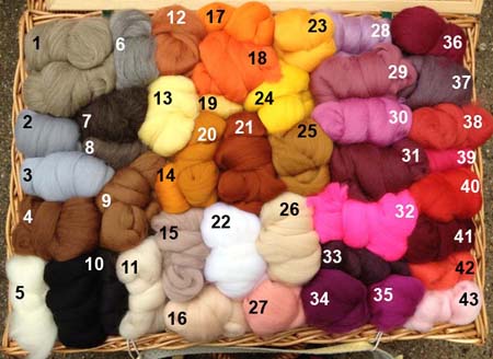 the right count for 3d needlefelting currently 70 beautiful fashion shades great for rapid felting. Small just 50p - enough for a fleece dog, approx 10g Large enough for a 3/4 inch bear, approx 20-25g £1 |