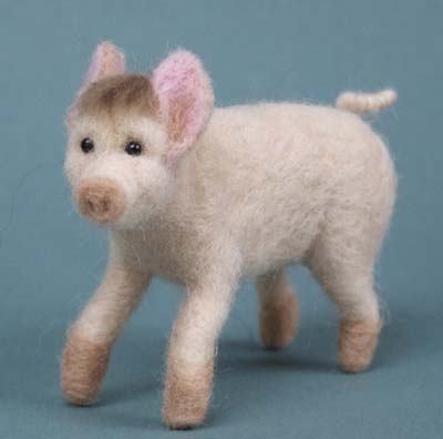 desired shape then over working with more wool to build up the muscle and other structures before adding the finishing colours to give Piggly his final appearance.