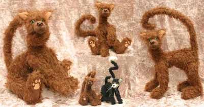 Brown ultrasuede with peach appliquéd pads and eyelids.