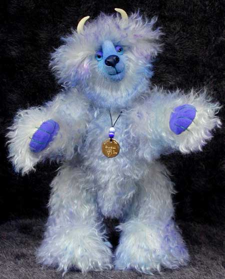 His paws are lined with calico and padded to allow him to stand on his own two feet (click
