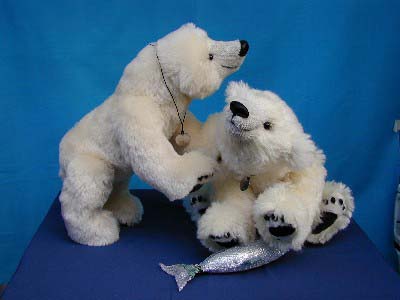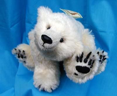 White polar bears with black hand moulded leather paw and nose features as featured in