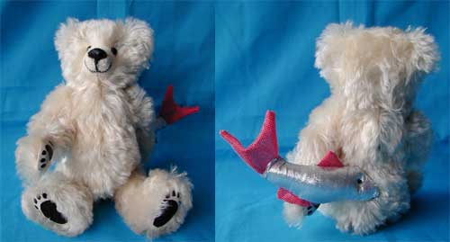 wavy German mohair, suede and leather hand decorated paw pads, glass eyes. Woodland