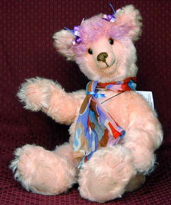 mohair, hand moulder leather nose, soft sculpted suede paw pads. Amber glass eyes. |
