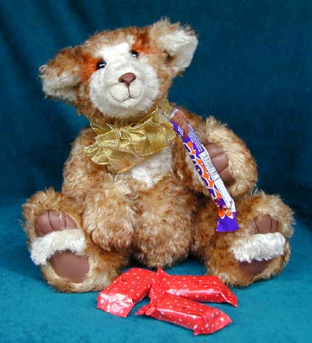 remainder white tipped with warm honey or fudge colour. leather nose and soft sculpted paw pads,