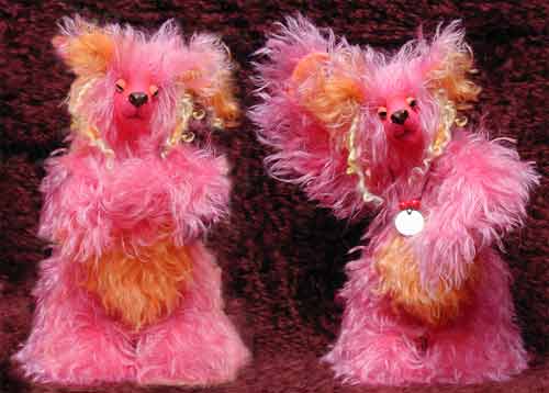 mohair in shocking pink with a tangerine and ear fronts , hand