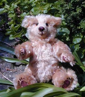 wavy German mohair, suede or leather paw pads and inner ears. Glass eyes. |