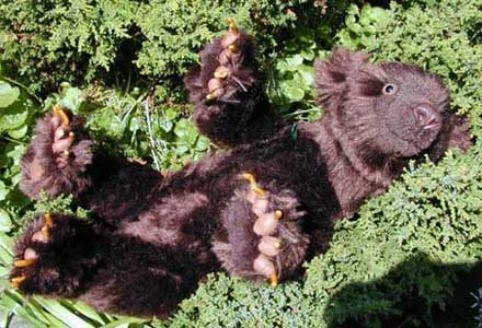 dark brown mohair, hand moulded leather nose, individual paw pads, claw sheathes and