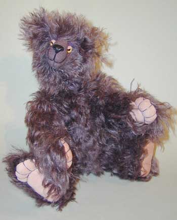 dusky pink ultrasuede soft sculptured paws and eyelids, wicked yellow glass eyes,