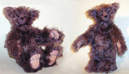 her paws and eyelids are needle sculptured using pretty soft and remarkably strong ultra suede, she has black glass eyes, hand dyed embroidery thread for her smile and